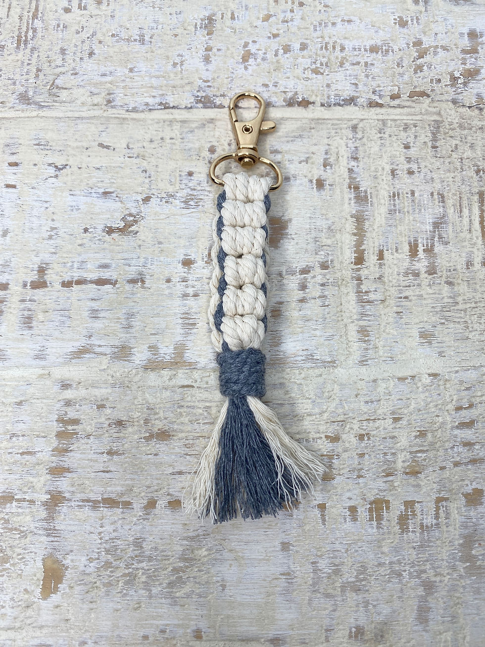 B3Autiful Creations Macrame Square Knot Keychain - White Knot / Gray Sides